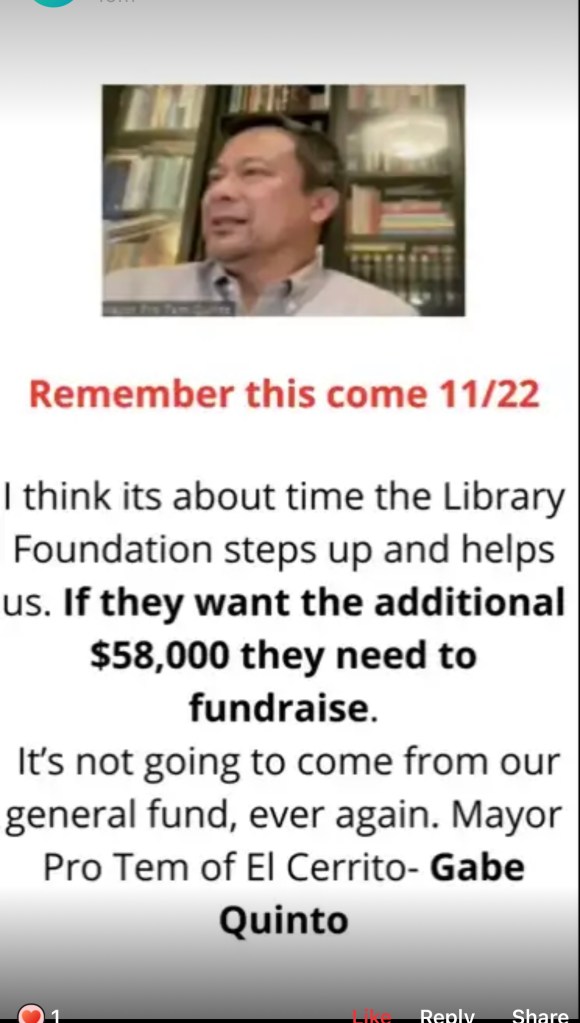 Gabe has selective memory. Not one penny of the $18+ Million collected under Measure V has been allocated to fund the library. Instead, Measure V funding was used to cover irresponsible fiscal management.