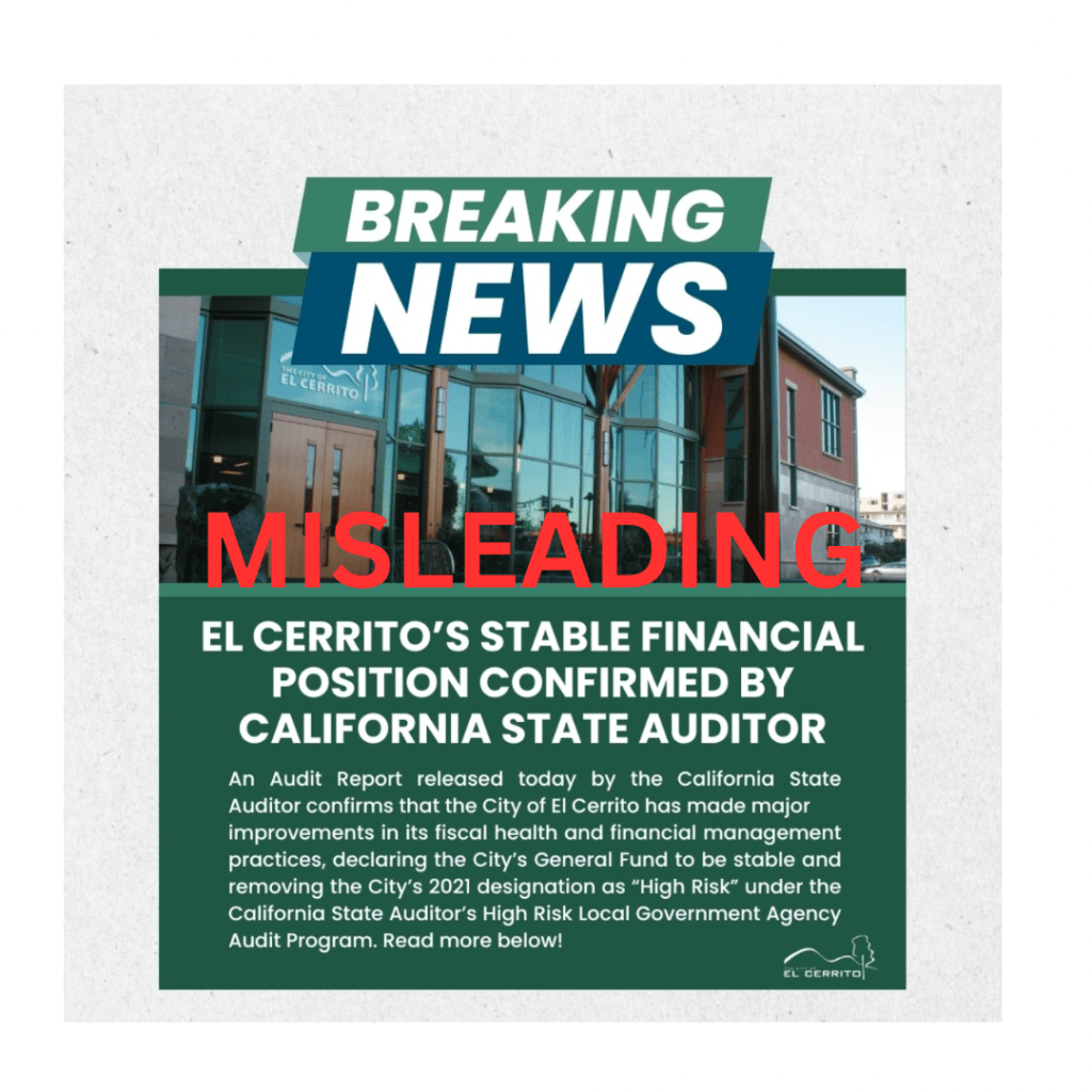 The City of El Cerrito has recently announced its removal from the California State Auditor’s High-Risk Local Government Agency Audit Program. While this may sound like a victory, it’s important to understand what this actually means. The “high risk” designation applies to only the worst 3% of cities in California. Being removed from this list doesn’t signify true financial stability—it simply means the city is no longer among the absolute worst financial performers.