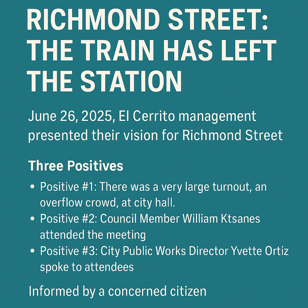 Yesterday on June 26, 2025, El Cerrito management presented their vision for the Richmond Street project—and if you missed the meeting, you can watch the recording here: