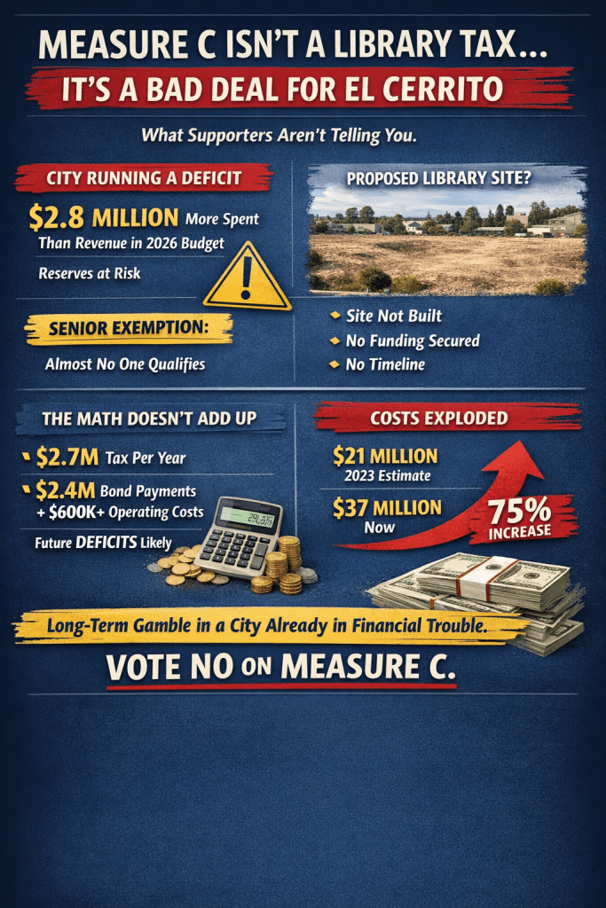 According to the City’s own February 2026 budget report, El Cerrito is spending approximately $2.8 million more than it brings in this fiscal year. The gap is being covered by drawing down reserves.