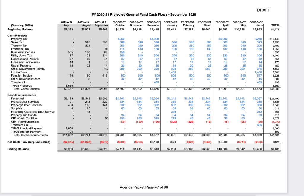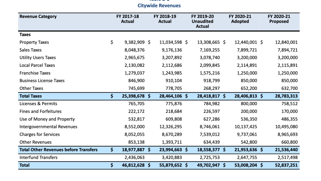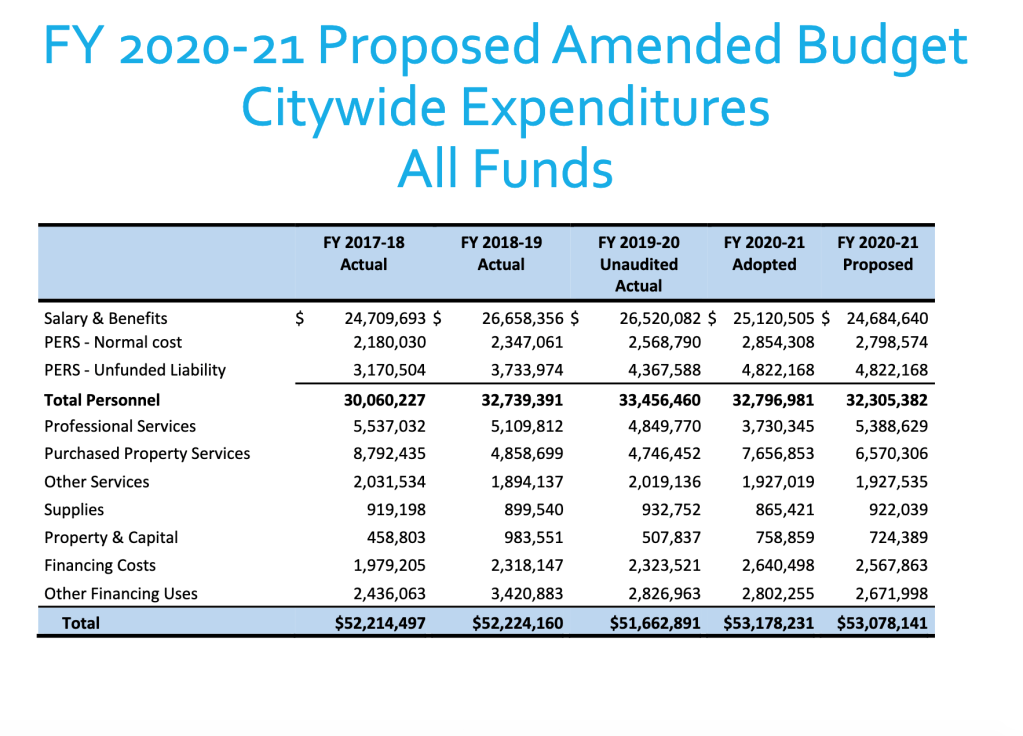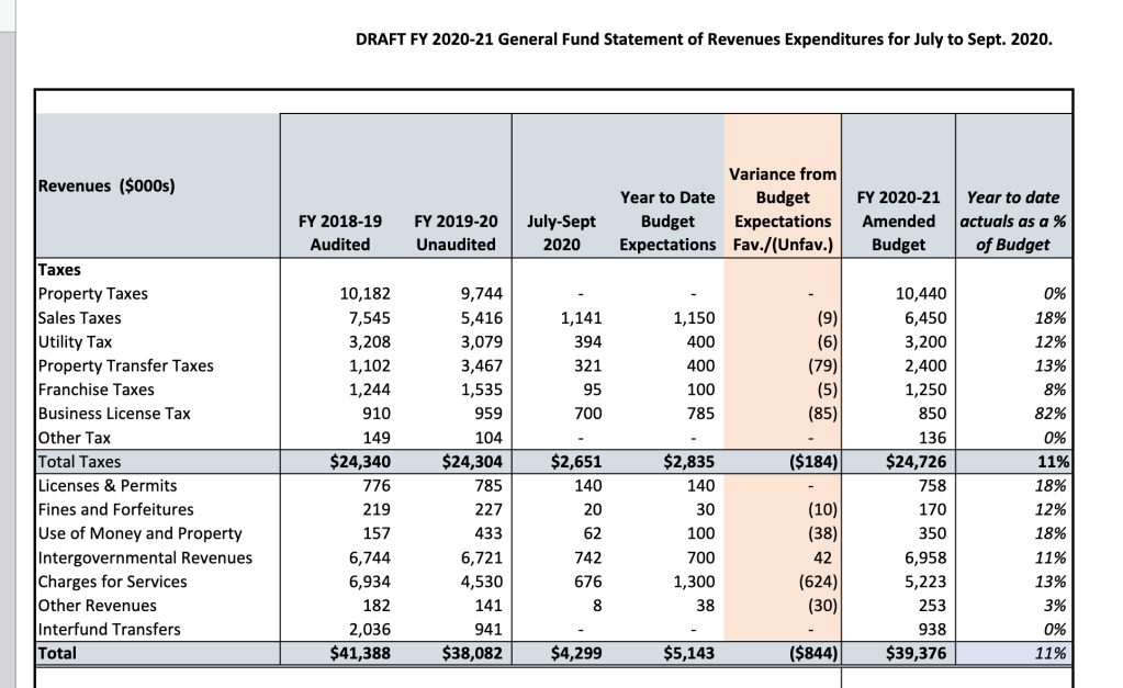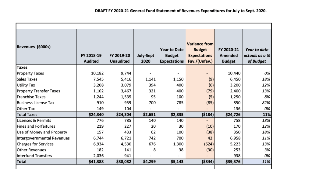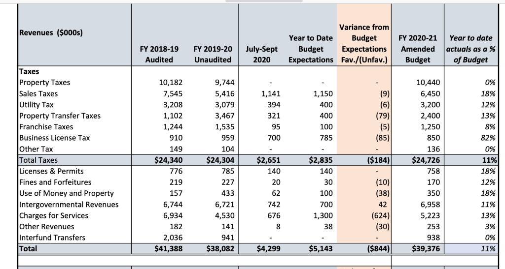 The next city council meeting is next Tuesday at 7 pm (2/2/21). On the agenda (item 7A) is a mid-year budget review. The packet is found here and the budget information starts on page 12.
