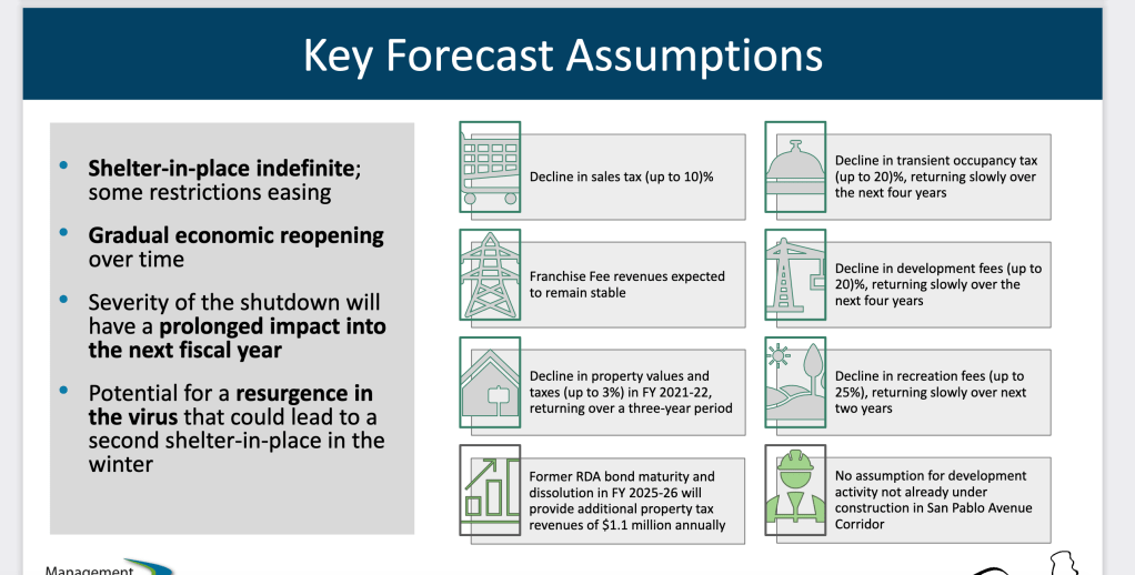 Councilperson Rochelle Pardue-Okimoto brought up the issue of the projections for sales tax and why the estimate was what it was. (see this blog post for issues with projections) She asked to compare the current sales tax with the beginning of the shut down in March. The Finance Director gave another hard to understand answer (2:49 in the video). He did say that El Cerrito gets some sales tax revenue as part of a county pool for taxes paid for online purchases which has mitigated some of the other sales tax revenue decreases. The Finance Director insists his figures are good. He also said that Honda of El Cerrito sales tax is down 49%. That is a huge financial loss of revenue for the city.