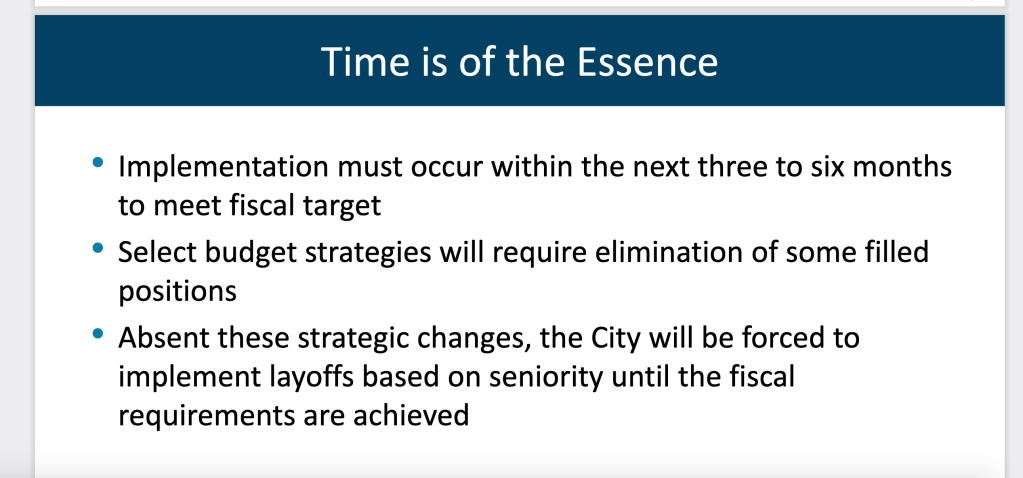 This blog, along with many members of the public, have been asking for more cuts since September 2020. We were repeatedly told they were studying things and they needed until the end of the year to figure things out. Then in January 2021 the Mayor and City Manager decided to not update the budget at the one meeting. So six months of potential cuts were lost. Now the City Manager dares to put in her staff report the following