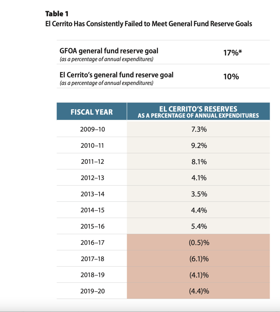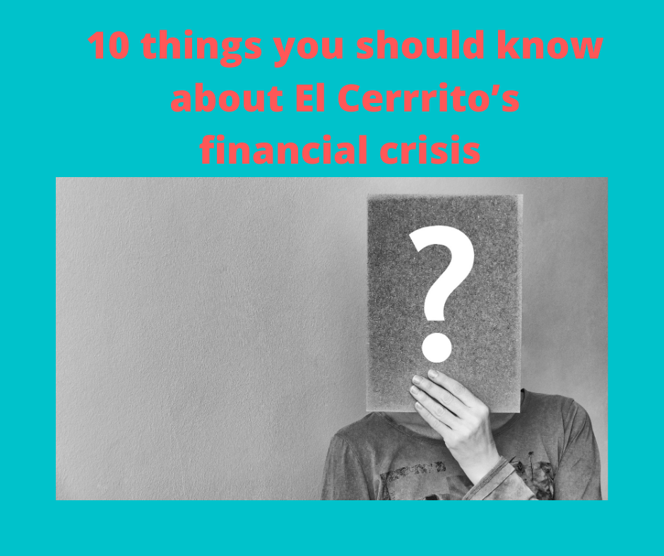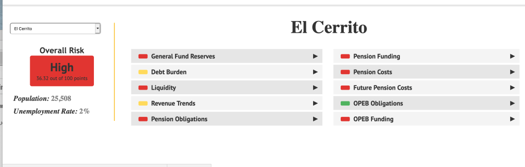 Today the State Auditor released their annual list of cities at high risk of financial difficulties. This list is based on FY 18/19 figures which was a better year for many municipalities. However, El Cerrito dropped from #7 to #6 largely based on lack of reserves (El Cerrito not only has no reserve but owes an 8.5 million dollar loan due at the end of the fiscal year.