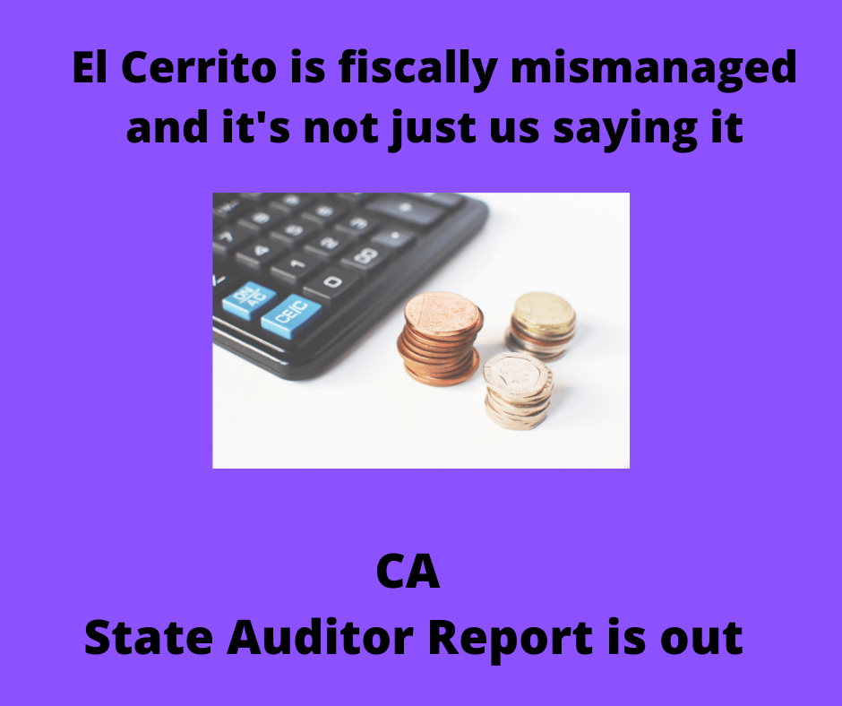 Ah, glorious redemption. The State Auditors report on El Cerrito is out and it says everything we have been saying for over a year plus some! All links are below and I encourage people to read it. It is scathing in its criticism.