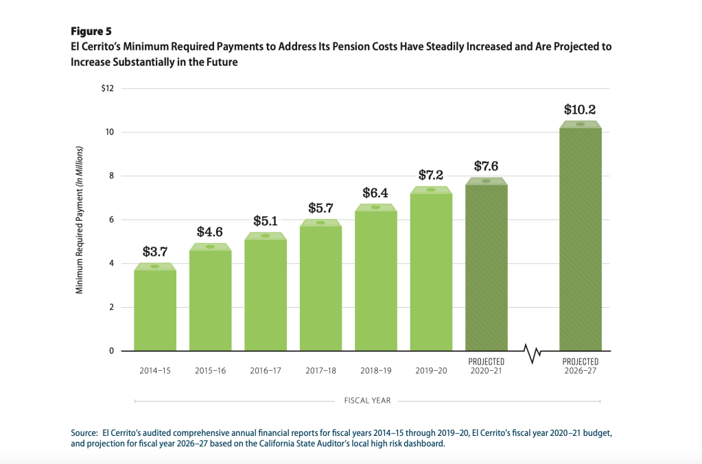 4. Our pension costs are out of control. Even in a state where that is common. We are also only making minimum payments. Below is the chart of how those minimum payments have grown.