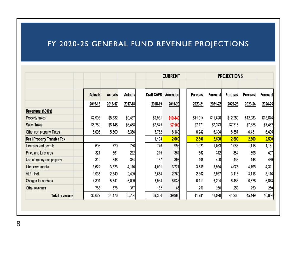 Although there were cautionary tales about limited revenues, etc. the city took a very short-term approach and narrow course of action when it came to growing reserves or managing costs. The City turned to the community for new taxes, but expenditures continued to rise.