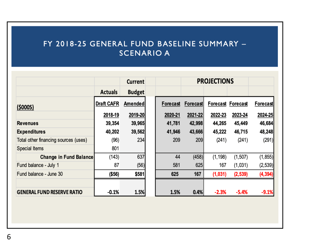 And as recently as June 2019, when the independent auditor called out the city’s ability to continue as a going concern for the third straight year, the City Manager and Finance Director went before City Council and said everything was fine. The City Manager told the Council, “The City will be taking steps to restore a positive fund balance position through the upcoming biennial budget cycle and expects to successfully achieve this by FY 2021.”