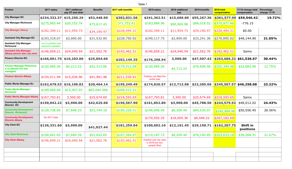 Per Transparent CA in 2018, employee compensation rose almost 5 MILLION dollars from 2017 to $29,323,885 for 384 positions 159 of which are full-time. In 2017 there were 375 total positions and 138 were full time year round. These raises and additional positions were added even though the auditor had for two years warned the city about their ability to continue as a going concern.