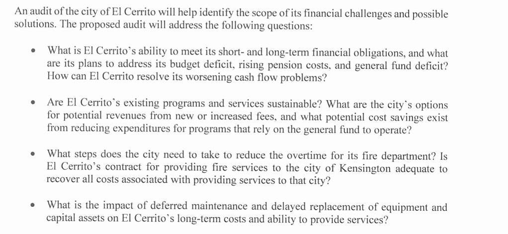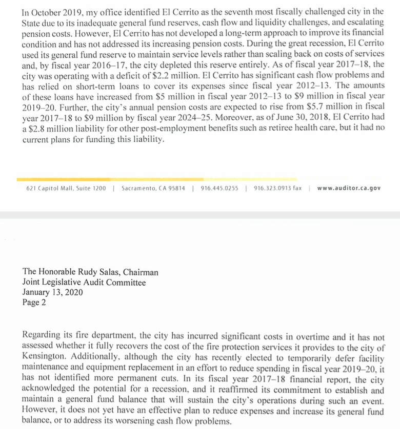 This was just 4 months before the state auditor called out that El Cerrito was 7th on the list of CA cities most likely to go bankrupt.